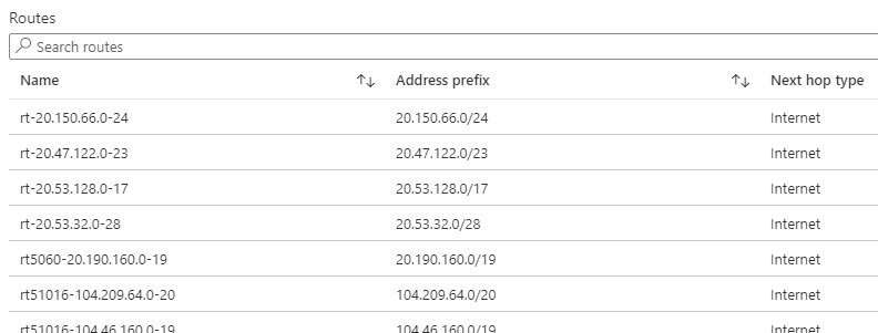 The script I’ve put together can utilise the Get-AzBgpServiceCommunity to grab all the CIDR prefixes for instance from “AzureActiveDirectory” or a region such as “AzureAustraliaSoutheast” and then automatically inject those routes directly into a route table. Otherwise, it can simply read in a text file with a list of CIDR addresses.